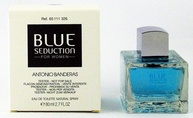Antonio Banderas Blue Seduction ima originalno steklenico, ki spominja na mozaik ploščic na dnu bazena. Turkizna barva vonja takoj vzbudi občutek čutne svežine. Vonj se odpre z limonino svežino italijanske bergamotke, zelenimi cvetnimi notami listov vijolice ter energičnimi toni lubenice in sočne hruške. Vaše srce bo prevzela cvetlična svežina gardenije in potonike, ki sta v popolni harmoniji z opojnim šopkom šmarnic, ki se poigravajo s sadnimi muhami malin. Očarljiva osnova vas bo osvojila s slastnimi sladkornimi toni, skrivnostnim vonjem naravne tropske smole, neustavljivo zapeljivostjo mošusa in provokativno razdražljivostjo pačulija.
