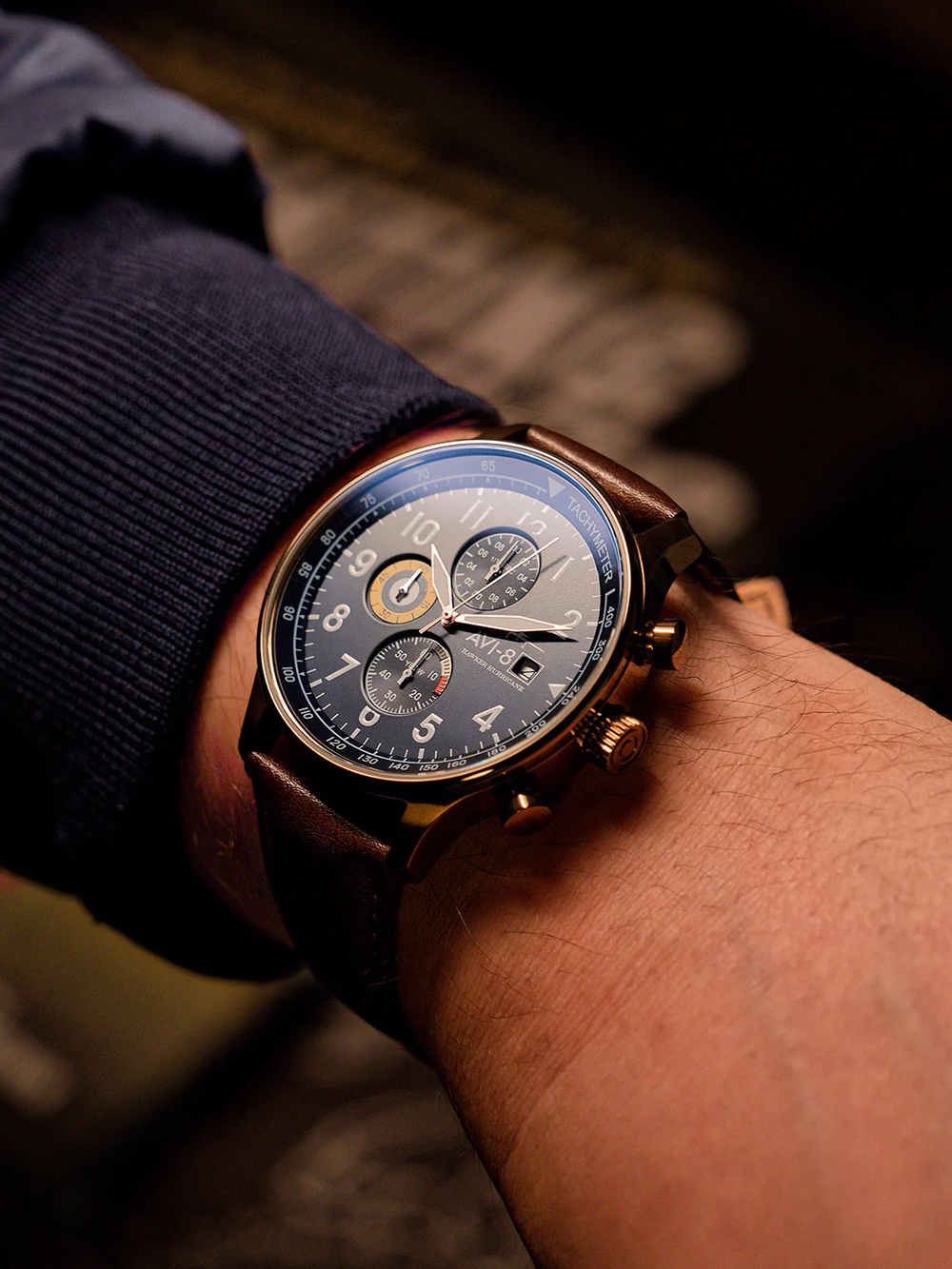 Zato ne oklevaj in izboljšaj svoj stil z zapestno uro AVI-8 AV-4011-0O Mens Watch Hawker Hurricane Classic Chronograph 43mm 5ATM.