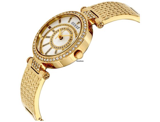 Ženska ura Guess W1008L2 ti doda eleganco in podpre tvoj stil. S kakovostno obdelavo iz delavnice znamke Guess ti ni treba skrbeti, da stopiš zraven.