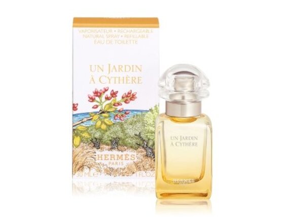 Toaletna voda Hermès Un Jardin à Cythère je citrusno-drvnata dišava za moške in ženske. Vesela in nezapletena dišava, ki jo je navdihnil grški otok Kythira, ki je navdihnil mnoge umetnike.