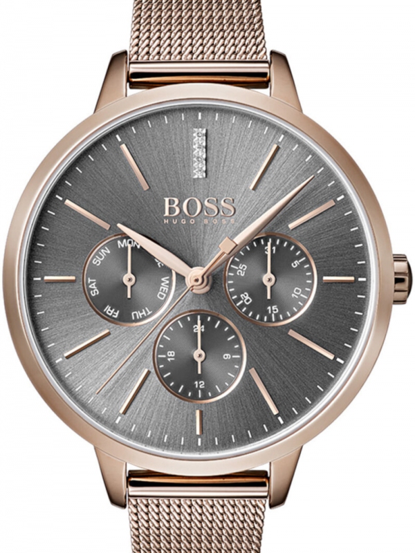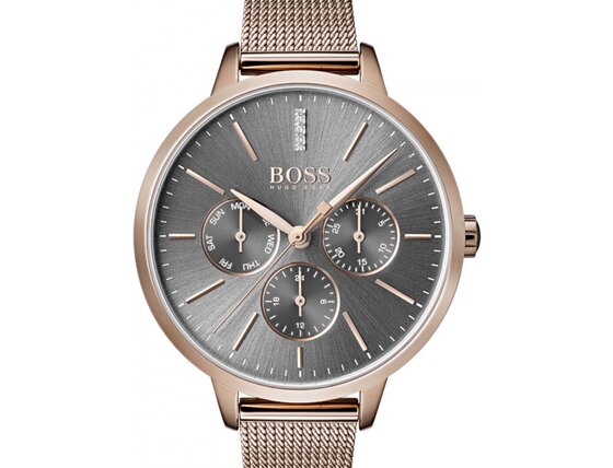 Ženska ura Hugo Boss 1502424 ti doda eleganco in podpre tvoj stil. S kakovostno obdelavo iz delavnice znamke Hugo Boss ti ni treba skrbeti, da stopiš zraven.