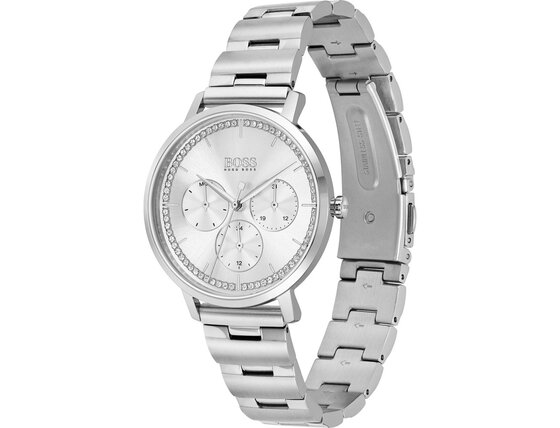 Ženska ura Hugo Boss 1502570 ti doda eleganco in podpre tvoj stil. S kakovostno obdelavo iz delavnice znamke Hugo Boss ti ni treba skrbeti, da stopiš zraven.