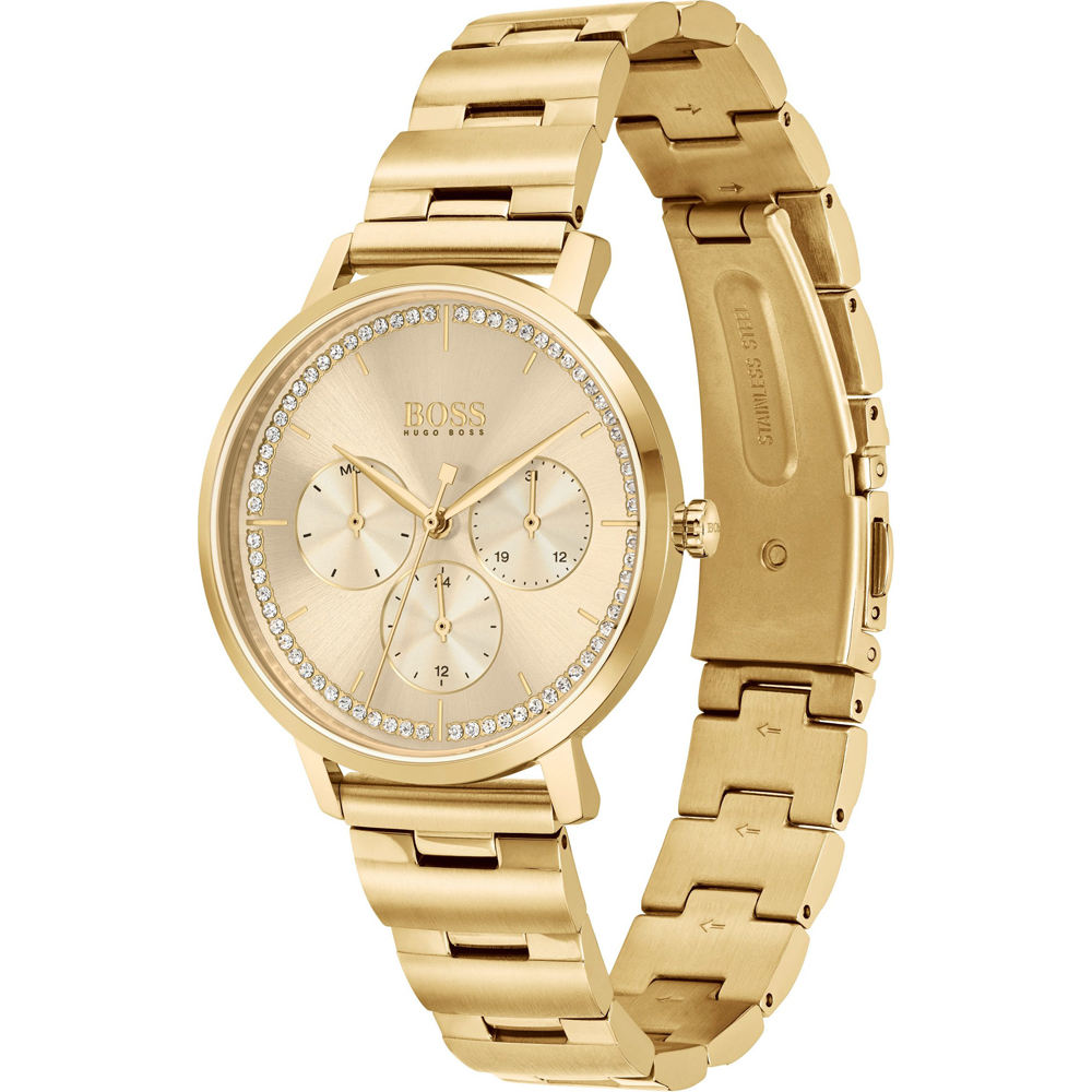Ženska ura Hugo Boss 1502572 ti doda eleganco in podpre tvoj stil. S kakovostno obdelavo iz delavnice znamke Hugo Boss ti ni treba skrbeti, da stopiš zraven.