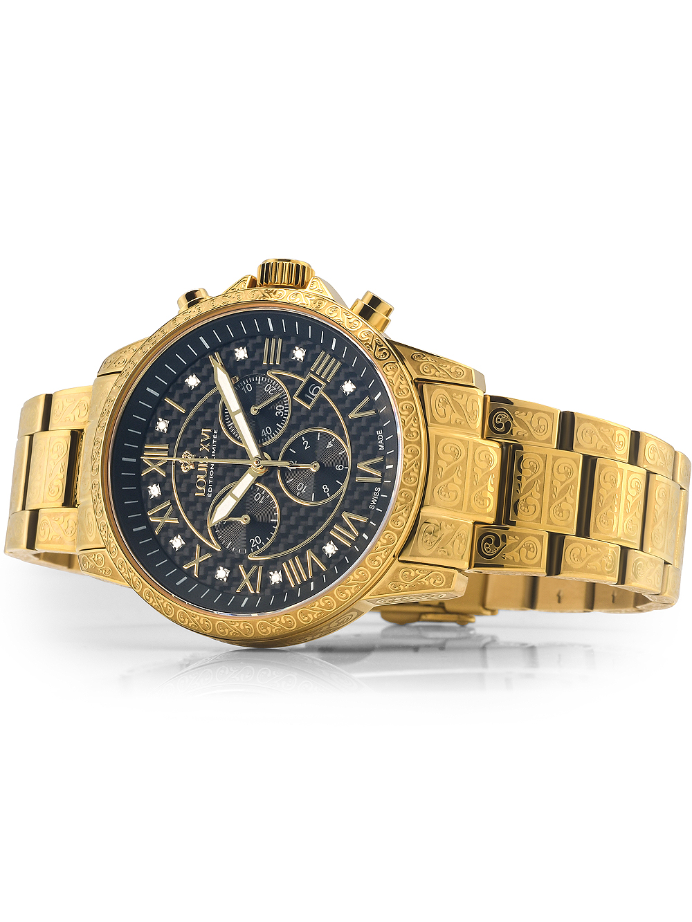 Zato ne oklevaj in izboljšaj svoj stil z zapestno uro Louis XVI LXVI1018 Palais Royale Chronograph mens watch 43mm 5ATM.