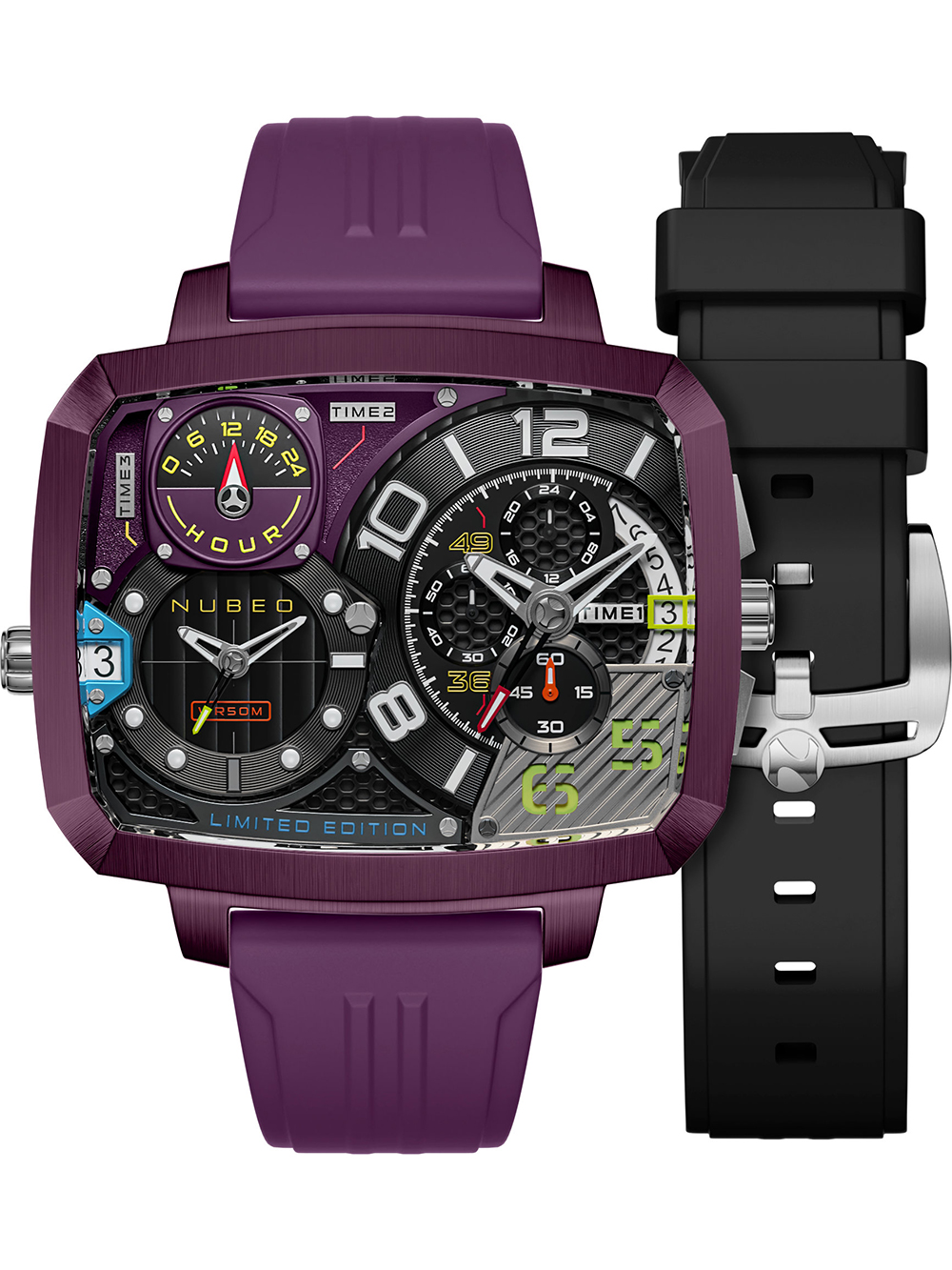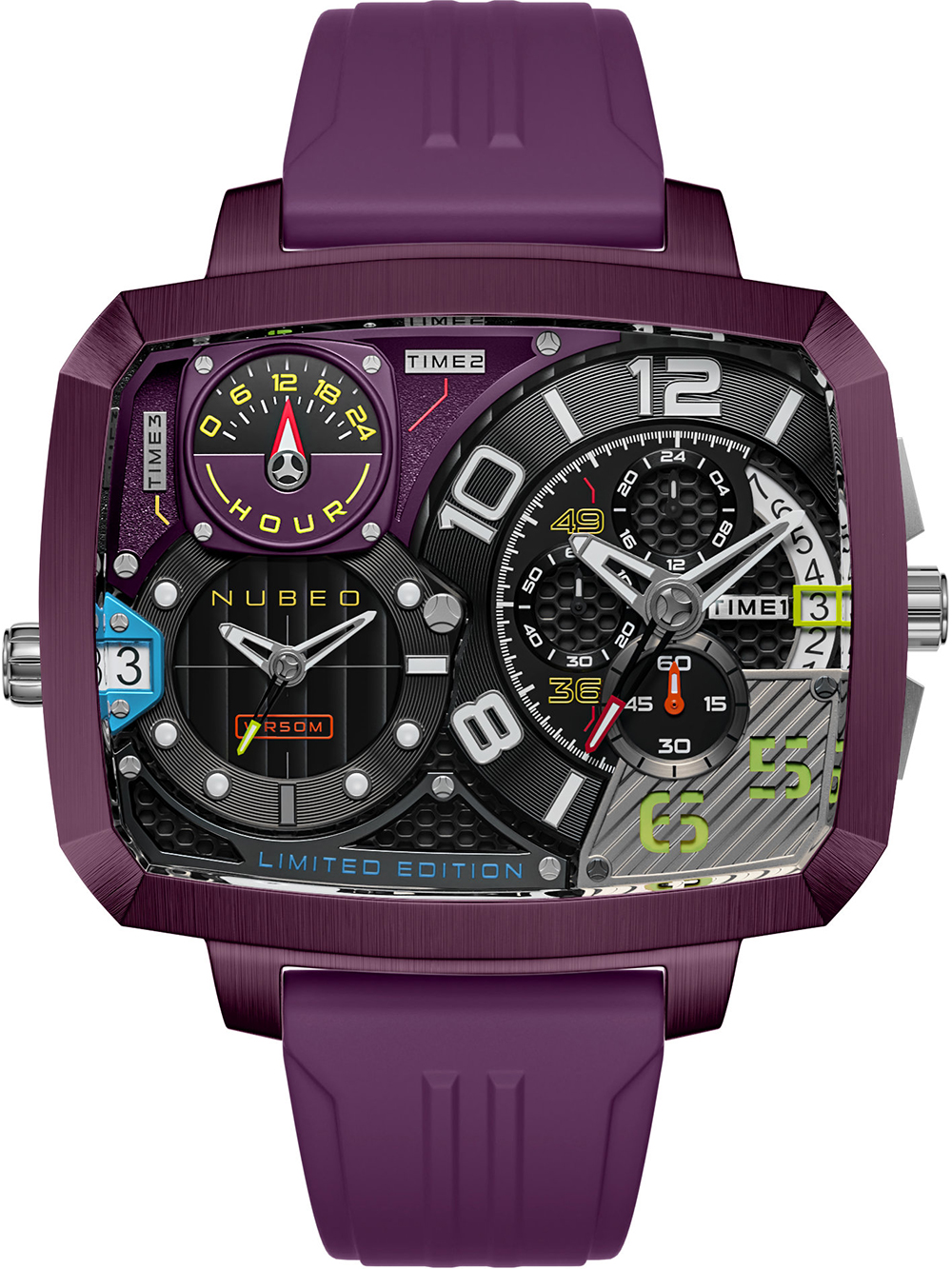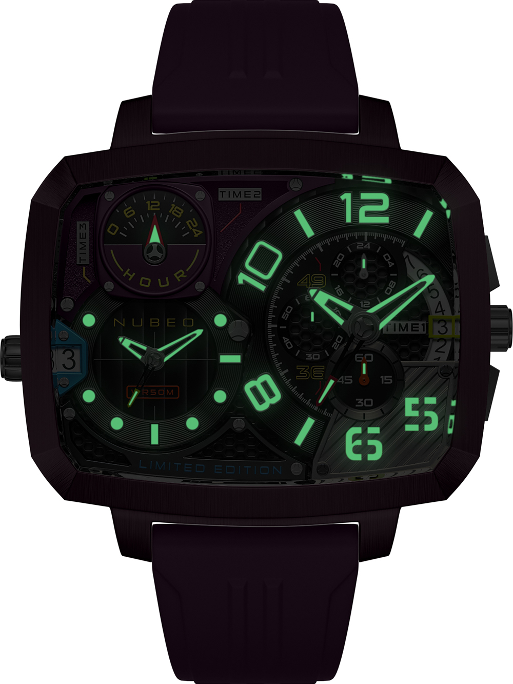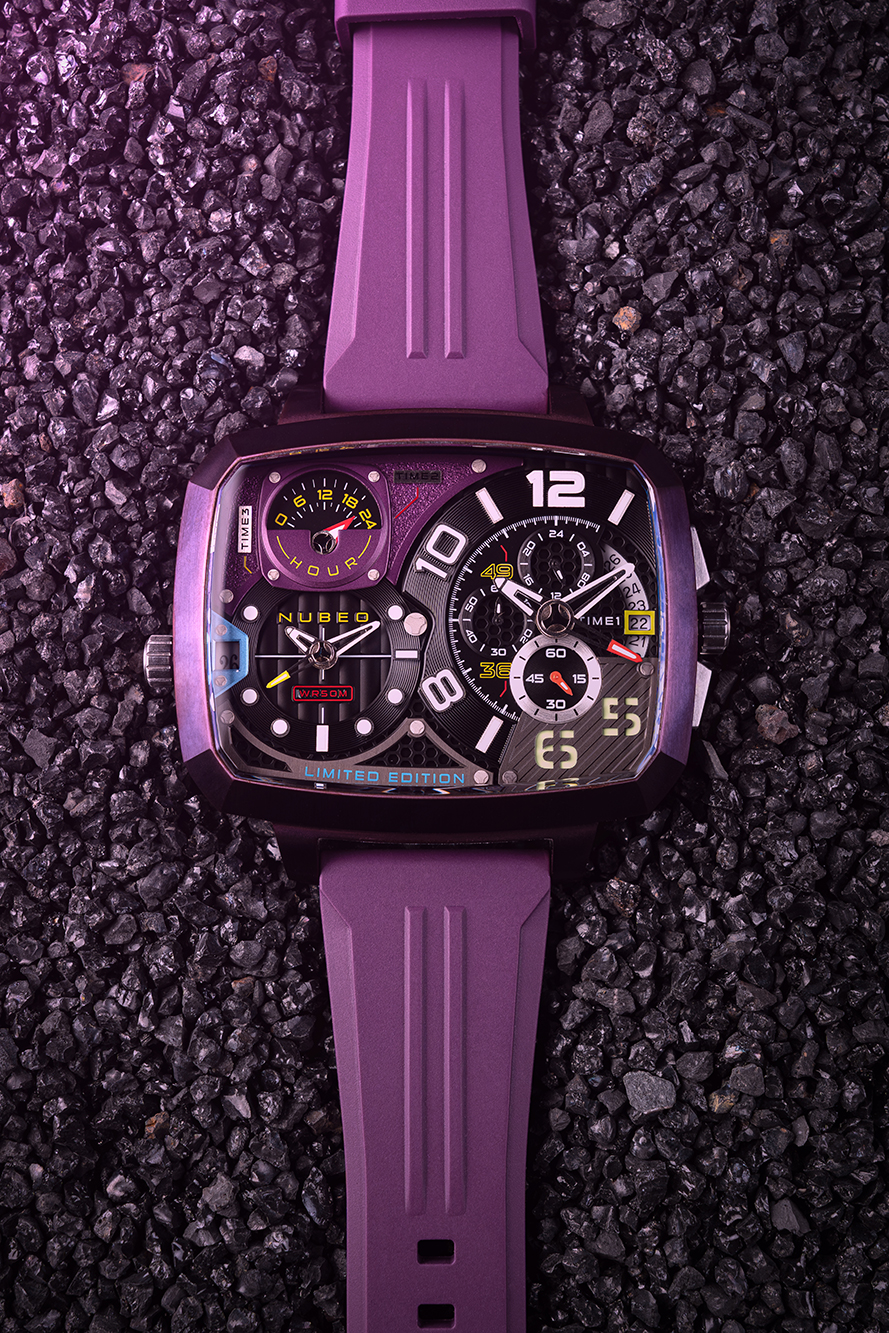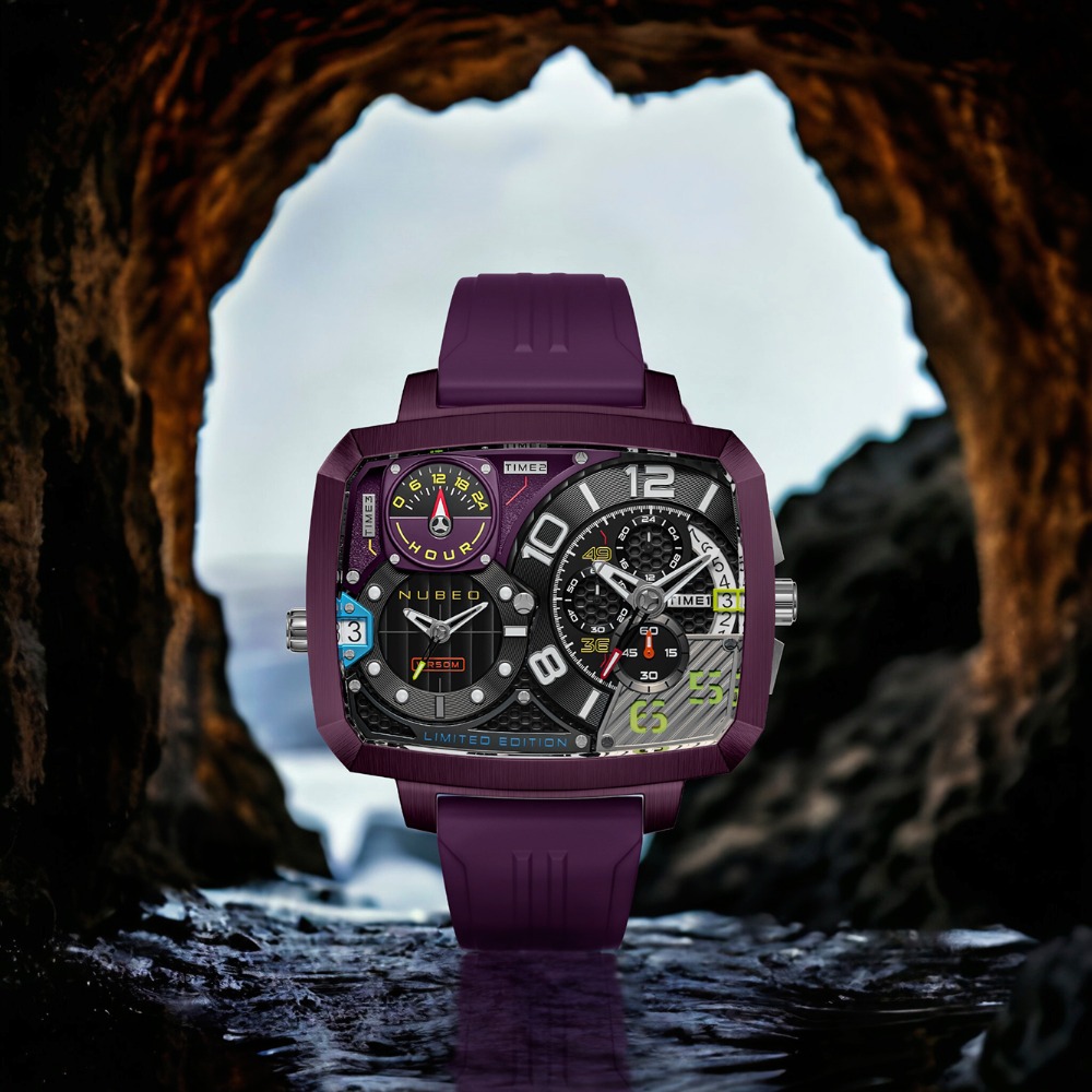 Nubeo NB-6084-06 Mens Watch Odyssey Triple Time-Zone Limited 58mm 5ATM