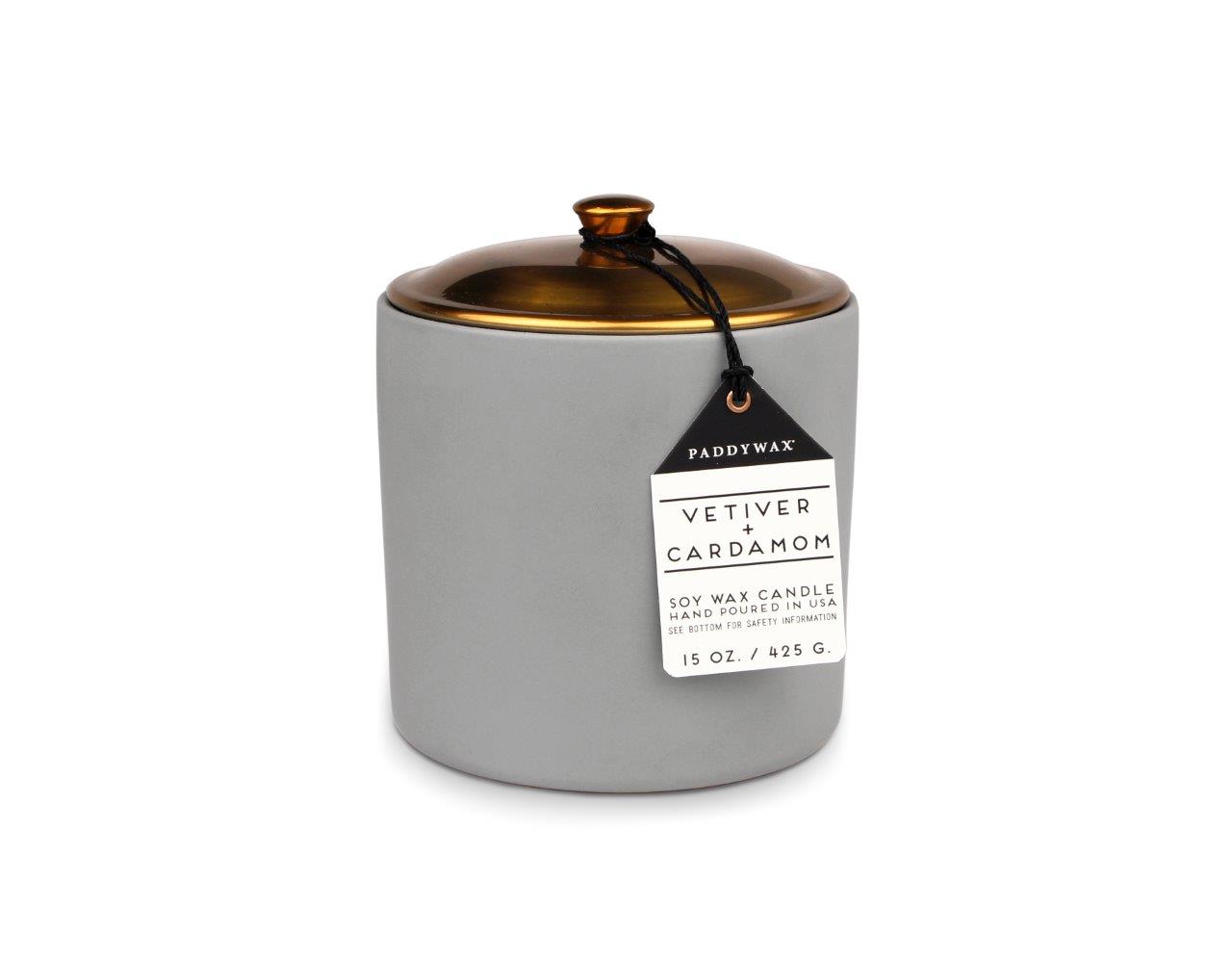 Paddywax HYGGE GREY VETIVER + CARDAMOM 3-Wick dišeča sveča (15 oz / 425 g)
